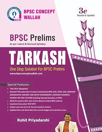 Tarkash by BPSC Concept Wallah is a comprehensive study guide designed to help candidates ace the BPSC Prelims exam. Revised and updated as per the latest syllabus, this book offers a one-stop solution for thorough preparation. It features topic-wise segregation, detailed explanations of previous exams conducted by BPSC (CCE, CDPO, AAO, JUDICIARY,