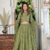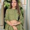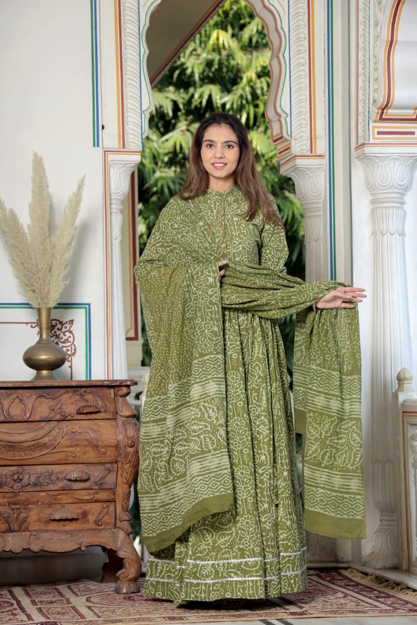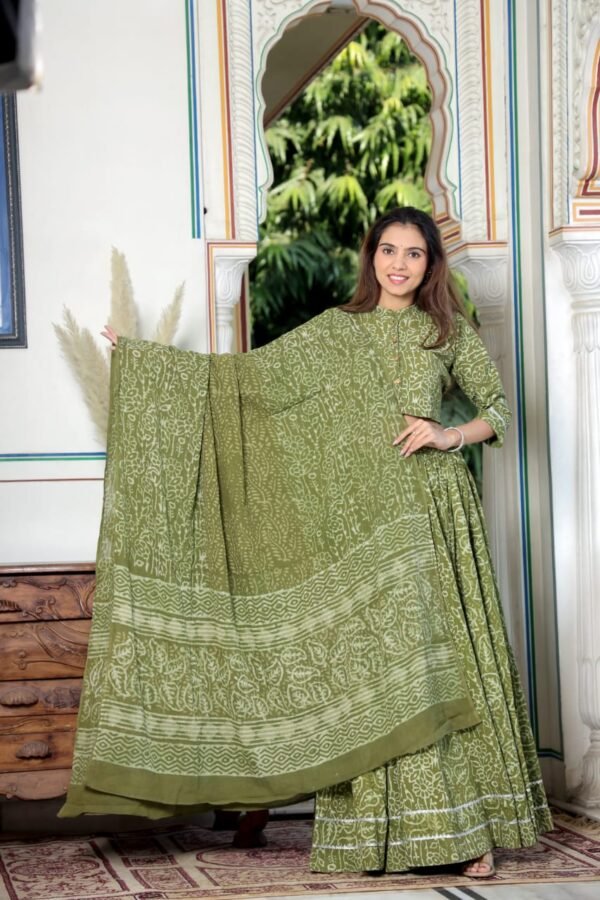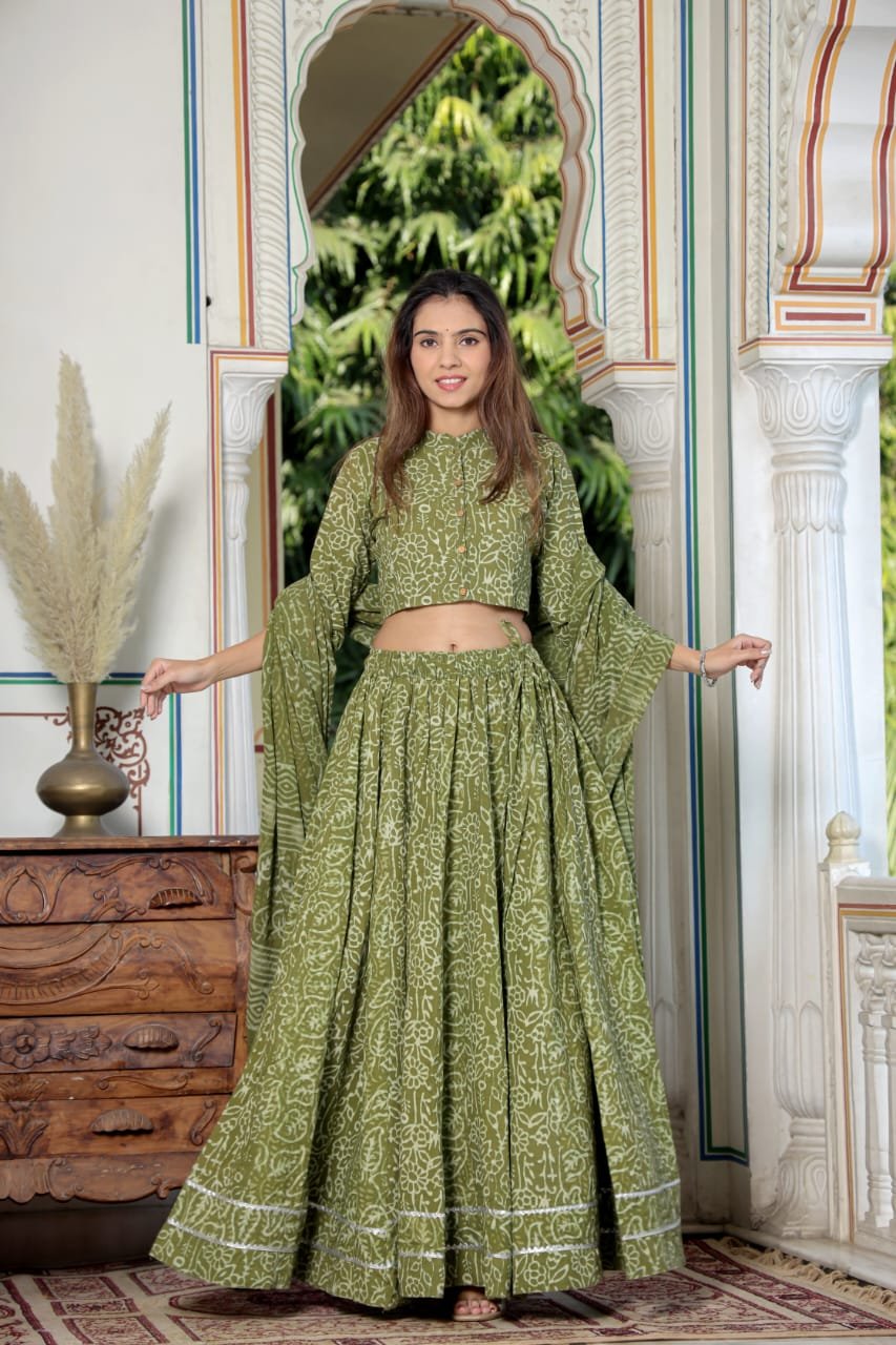 Bagru Hand Block Printed Designer Crop Top & Skirt With Mulmul Dupatta.Â