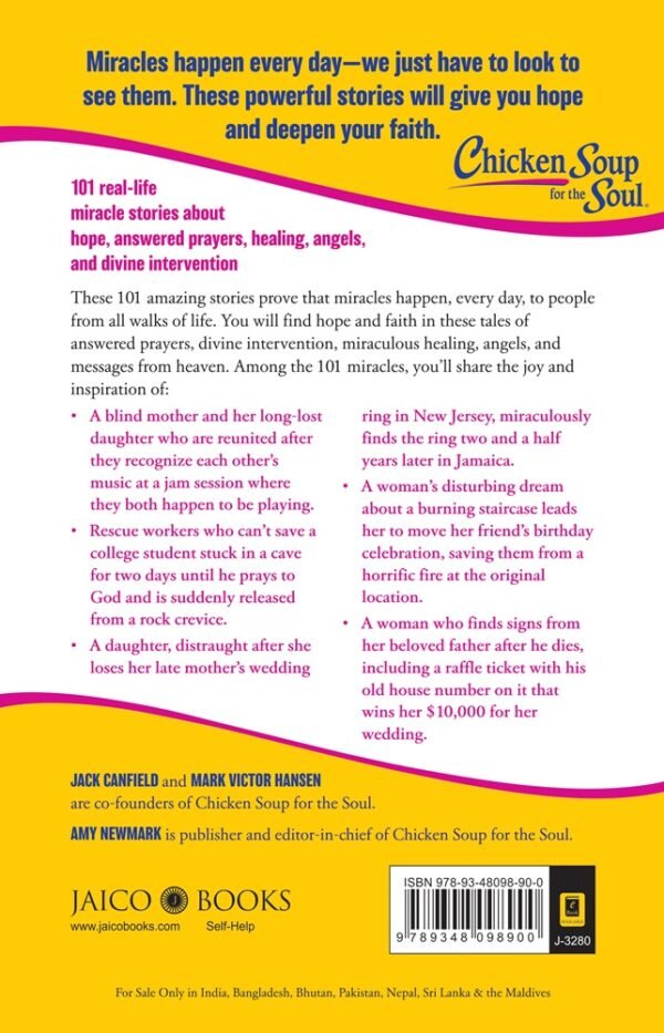 These 101 amazing stories prove that miracles happen, every day, to people from all walks of life. You will find hope and faith in these tales of answered prayers, divine intervention, miraculous healing, angels, and messages from heaven. Among the 101 miracles, you’ll share the joy and inspiration of: