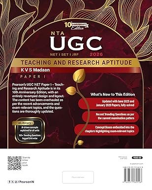 Pearson’s UGC NET Paper 1 – Teaching and Research Aptitude is in its 10th Anniversary Edition, with an entirely revamped design and layout. The content has been overhauled as per the recent advancements and exam-relevant topics, and the questions are thoroughly updated.