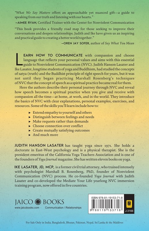 Larn how to communicate with compassion and choose language that reflects your personal values and aims with this essential guide to Nonviolent Communication (NVC). Judith Hanson Lasater and Ike Lasater, longtime students of yoga and Buddhism, had studied the concepts of satya (truth) and the Buddhist principle of right speech for years, but it was not until they began practicing Marshall Rosenberg’s techniques of NVC that the concept of speech as a spiritual practice became real for them.Read More